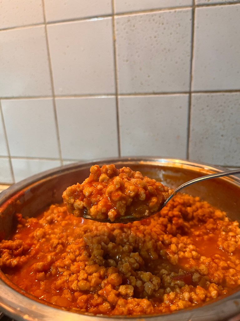 Questo ragù è preparato a base di granulare di soia e si presta benissimo a qualsiasi uso: per condire la pasta, per fare delle ottime lasagne e potete prepararlo anche in anticipo e riporlo poi in freezer per averlo sempre pronto all’uso quando vorrete una bella e buona pasta al ragù 🙂