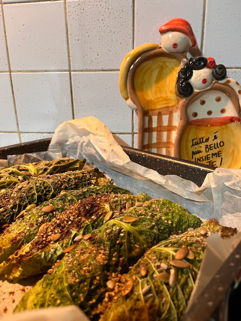 Frulliamo il tutto e la nostra crema dovrà essere densa per poterla mettere dentro alle foglie di verza e semplicemente poi arrotolarle su se stesse 🙂